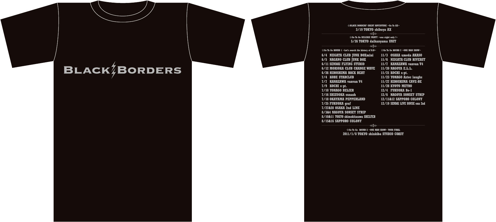 BBロゴとバックプリントに2010伝説のAXライブから2011ワンマン1発目のスタジオコーストまでのBBワンマンツアースケジュールが入ったTシャツです。